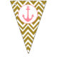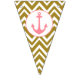 Personalisiertes metallisches Gold und Zickzack Muster mit rosa Wasserballenflagge. Das Design ist mit einem Zickzack Metallmuster aus Gold und Weiß, einem rosa Anker und Ihrem individuelle Name ausgestattet.