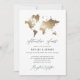 Metallic Gold Effekt Reisen Welt Karte Hochzeitseinladung Karte. Mit einer schönen klassischen Goldweltkarte und einem schönen Skripttext. Ideal für ausländische Hochzeiten oder Reisende.