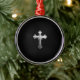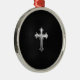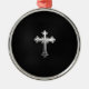Metallisches Kruzifix auf schwarzem Leder Silbernes Ornament