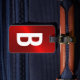 Ändern Sie einfach das Monogramm Initial auf der Vorderseite und den Namen und die Adresse auf der Rückseite des roten Gepäckanhängers.