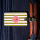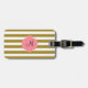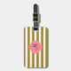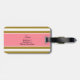 Monogramm metallisches Gold und rosa gestreiftes Gepäckanhänger. Das Design zeichnet sich durch ein metallisches, goldfarbenes und weiß gestreiftes Muster und eine rosa Quarrefolienform in der Mitte aus.