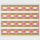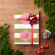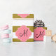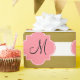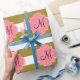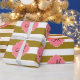 Monogramm metallisches Gold und rosa gestreiftes Packpapier. Das Design zeichnet sich durch ein metallisches, goldfarbenes und weiß gestreiftes Muster und eine rosa Quarrefolienform in der Mitte aus.