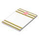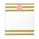 Monogramm metallisches Gold und rosa gestreiftes Notizblock. Das Design zeichnet sich durch ein metallisches, goldfarbenes und weiß gestreiftes Muster und eine rosa Quarrefolienform in der Mitte aus.