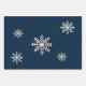 Lassen Sie sich mit unserer exquisiten Metallic Snowflake Wrapping Paper Kollektion verzaubern. Jedes Blatt hat einen reichhaltigen marineblauen Hintergrund mit eleganten metallischen Schneeflocken, der Ihren Geschenken eine Touch Winterverzauber verleiht. Wählen Sie aus drei fesselnden Designs: eine strukturierte Wiederholung größerer Schneeflocken, eine delikate Anordnung kleinerer, spärlicher Schneeflocken und ein Bio Design, das um eine auffallende große Schneeflocke mit verstreuten kleineren zentriert ist. Diese hochwertigen Packpapierblätter verleihen Ihren Urlaubsgeschenken einen eleganten und festlichen Charme und sorgen für eine unvergessliche Präsentation, die den Geist der Saison perfekt einfängt. Lassen Sie Ihre Geschenke mit diesen sorgfältig gefertigten und einzigartig gestalteten Packpapier-Blättern glänzen.