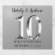 Zehn Jahre gemeinsam feiern. Glücklicher 10. Hochzeitstag. Silbermetallisches Etikett.