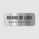 Ein einfaches Design mit Ihrem Firmenlogo und Mitarbeiternamen auf einem silberfarbenen Hintergrund. Ideal für Geschäfte, Geschäfte, Büros, Kundenservice, Messen etc. Passen Sie Ihr Firmenlogo und Ihren Text an und machen Sie es zu Ihrem eigenen.