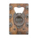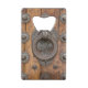 Metallknopf an der alten Holztür Kreditkartenflaschenöffner
