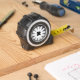 Interne Zahnräder mit scharfen Metallzähnen und dem Monogramm.