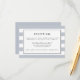 Diese einfache und schicke Empfang-Informationskarte, die sich mit unseren Metro Stripe Gray-Einladungen für Hochzeitsfeiern und Veranstaltungen abstimmt, bietet einen Hintergrund mit breiten, horizontalen Streifen in blassblau, grau und weiß. Ihre Hochzeitsempfangsdetails werden in einer Mischung aus modernem Blockstil und klassischen Schrifttypografiestilen in klassischem Schwarz kombiniert. Geben Sie Ihre Schlüsseldaten wie Empfang Timing, Lage und Transport oder Parken mit den angegebenen Feldern ein.