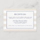 Diese einfache und schicke Empfang-Informationskarte, die für die Abstimmung mit unseren Marinesoldaten und der Creme Metro Stripe konzipiert wurde, zeichnet sich durch einen Hintergrund aus breiten Streifen in hellem Flachs Elfenbein und Weiß aus. Ihre Hochzeitsempfangsdetails in einer Mischung aus modernem Block und traditionellem Schriftzeichen-Stil in marinebasischem Blau. Geben Sie Ihre Schlüsseldaten wie Empfang Timing, Lage und Transport oder Parken mit den angegebenen Feldern ein.
