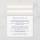 Diese schlichte, elegante Karte mit marineblauen und cremefarbenen Metro Stripe Hochzeitskollektionen wurde entworfen, um sich mit marineblauen Buchstaben, breiten beigen und weißen Streifen und einem dünnen Marineband abzustimmen. Ersetzen Sie den Beispieltext durch die Schlüsseldetails Ihrer Hochzeitsfeier. Fragen Sie, welche Informationen auf einer Hochzeitseinladung einfügen? Denken Sie an Details wie Hotelunterkünfte, Gruppennummern, Transport, Informationen über den Empfang und Ihre Hochzeitswebsite url.