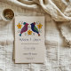 This Mexican Birds Floral Magenta Navy Blue Wedding Invitation vibrant design showcases two stylized birds facing each other, one in deep magenta with purple accents and the other in rich navy blue with green wings, both adorned with contrasting tail feathers and head crests. Between and around the birds are bright yellow-orange flowers with swirling black stems, creating a symmetrical and decorative floral frame. Set against a soft off-white textured background, the illustration exudes a folkloric, romantic charm—perfect for invitations or celebratory stationery.