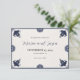 Dieses mexikanische Blue Floral Otomi Simple Fiesta Wedding Save the Date Design weist eine einfache und elegante Grenze mit dunkelblauen Blumen- und Vogelelementen auf, die in jeder Ecke delikat platziert sind. Der zentrale Bereich wird leer verlassen, gerahmt durch eine dünne blaue Linie, die einen sauberen und minimalistischen Hintergrund für den Text bietet. Die Kombination von Vögeln und Blume und die zurückhaltende Farbgebung verleihen dem Design ein raffiniertes und dennoch traditionelles Aussehen, das von mexikanischen Volksmotiven inspiriert wird.