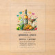 Feiern Sie stilvoll mit dieser festlichen, transparenten Acrylabend-Probe-Einladung mit einem lebendigen mexikanischen Fest-Thema. Vollständig mit farbenfrohen Papelpicado, einer Tequila-Flasche, Margaritas, Tacos und frischen Limes, besticht dieses Design perfekt durch den Geist einer lustigen und lebendigen Vorehelichtsfeier. Vollständig anpassbar, ist es ein unvergesslicher Weg, Ihre Gäste zu den Festlichkeiten einzuladen.