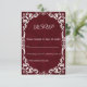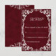 Celebrate your special day with this Burgundy Rustic Wedding RSVP Card, inspired by rustic elegance and natural earthy tones. Delicate white floral lace motifs on a warm Burgundy background create the perfect blend of rustic charm and timeless beauty. Ideal for outdoor, boho, or destination weddings, this RSVP card coordinates perfectly with the matching Burgundy Rustic Wedding Invitation and is fully customizable with your own wording and colors.