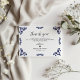This Mexican Talavera Black Floral Minimalist Wedding Thank You Card design features a minimalist approach with delicate, symmetrical black floral motifs placed in each corner and along the edges. The small, leaf-like shapes create a sense of movement while maintaining an airy, open space in the center, allowing for ample text placement. The simplicity and elegance of the pattern evoke traditional Talavera tiles, giving the design a classic Mexican artisanal feel.