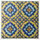 Bring the vibrant warmth of the Mediterranean to your home with this Mexican Talavera style ceramic tile. Featuring a stunning Spanish Azulejo pattern, this design showcases a rich color palette of deep navy blue, teal, and bright mustard yellow. The intricate geometric floral motif mimics the look of traditional hand-painted Majolica pottery, making it a timeless addition to any space.