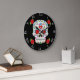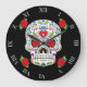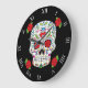 Mexican Tattoo Sugar Skull and Red Roses Große Wanduhr
