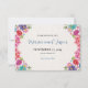 Diese farbenfrohe mexikanische Botanische Fiesta Wedding Save the Date-Gestaltung strotzt vor lebhaften, handgezeichnet Blume in verschiedenen hellen Farbtönen, darunter Rosa-, lila-, Gelb- und Türkistönen, die einen Rahmen um den zentralen Bereich bilden. Die aufwändigen Details der Blütenblätter und Blätter, die kleinen Blumenakzente und die Grünflächen verleihen dem Raum eine lebendige und fröhliche Atmosphäre. Das Gesamtbild wird von mexikanischer Volkskunst inspiriert, mit festlichem und spielerischem Ambiente, das sich perfekt für einen feierlichen Anlass wie eine Hochzeit eignet.