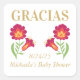 Ein schöner roter Blumenstrauß-Stil danke Ihnen Aufkleber. Der Aufkleber "gracias" zeichnet sich durch ein rotes Fiesta-Blume-Design und eine goldfarbene Schrift aus. Ideal für eine mexikanische Babydusche. Und kann für einen Jungen, ein Mädchen oder eine geschlechtsneutrale Dusche verwendet werden. Dieser Aufkleber hat Platz für das Datum und den Namen Ihres besonderen Tages. Anpassen Sie die Formulierung einfach, indem Sie die Schaltfläche "Personalisieren" auswählen.