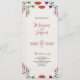 Dieses mexikanische Folk Art Colorful Floral Fiesta Wedding Programm ist ein vertikales Design mit einer bunten, blumengeschmückten Folk-Art Rahmen, der die oberen und unteren Ränder der Seite schmückt und einen eleganten Rahmen auf einem texturierten cremefarbenen Hintergrund schafft. Zu den symmetrischen Blumenmotiven zählen fett rote und orangefarbene Blume, lebhafte Paisley-Akzente, zarte Weinreben und Teardrop-Blätter in heller Blues, Purpel, Gelb und Grüntöne. Mit seiner festlichen und lebendigen Anordnung ist das Design ideal für Veranstaltungsprogramme, Menüs oder Hochzeitssignaturen, die ein fröhliches, künstlerisches und kulturell inspiriertes Aussehen suchen.