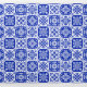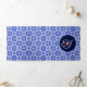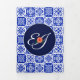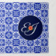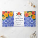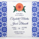 Einladungen im mexikanischen und spanischen Stil mit traditionellen blauen Fliesen im Hintergrund und hellgelben und orangefarbenen Marigolds.