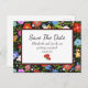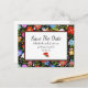 Helle und farbenfrohe mexikanische Folk Art Blues auf einem schwarzen Hintergrund Save the Date Karte.