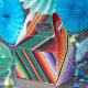 Vintage mexikanische Decke mit hellen Streifen und festlichem Design.