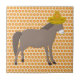 Diese phantastische Kachel hat einen blassbraunen Esel mit dunkelbrauner Mane und Schwanz. Der Esel ist bereit, den Tag der Toten, Dia de los Muertos, zu feiern. Der Donkey trägt einen Sombrero mit roten und grünen Sternen, Karotten, bunten Wirbel, Kirschen und roten und grünen Schüttelfrost. Eine Blume mit orangefarbenen Blütenblättern und ein gelbes Zentrum in der Hutmitte, Tithonia genannt, oder mexikanische Sonnenblume.