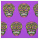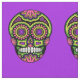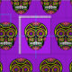 Ein farbenfrohes Zuckerschädelmuster auf einem lila Hintergrund.