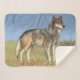 Ein mexikanischer Grauwolf steht auf einem Grasfeld.