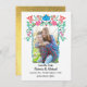 Hübsches mexikanisches Fiesta mit ein wenig vergoldeten Imitaten Save the Date mit dem Foto des Paares. Hübsche florale Papel Picado Akzente.