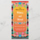 Das passende Hochzeitsprogramm für Imitate mit goldenem Glitzer, Papel-Picado-Blume und Teppichhintergrund.