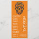 Eine bunte und niedliche Menüschablone für ein mexikanisches Restaurant, ein Bar oder mexikanisches themed ein Abendessen-Party. Dieses niedliche Menü hat eine niedliche Illustration des mexikanischen themed Zuckerschädeltages des toten Themas gegen einen hellen orange kundengerechten Hintergrund. Der Text ist in der Lage, zum Anzug besonders angefertigt zu werden Ihr Bedarf.
