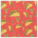 Coole Stoffe, bedruckt mit einem handgezeichneten Muster von gefüllten Taco-Muscheln, Kakteen und Chili-Paprikaschoten auf einem hellroten Hintergrund