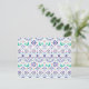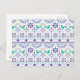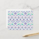 Dieses Folkloredesign weist ein Vogelbild auf, das aquamarine, lila und orangefarbene geometrische Kacheln umgibt.