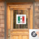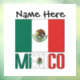 Die grüne, weiße und rote mexikanische Fahne zeigt sich schön an diesem Fenster. Unter der Flagge ist das Wort MEXICO in den Farben der Flagge. Oben ist ein Raum, der mit Ihrem Namen, einem Familiennamen oder, mit einem anderen Namen für ein Geschenk personalisiert werden soll.