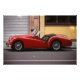 Die Seitenansicht eines roten MGA Roadster Sportwagen und Oldtimers.