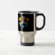 Reise-Tasse mit SMI-ähnlichem mysteriösem Logo auf schwarzem Boden