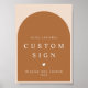 Dieses individuell bearbeitbare Schild weist eine verbrannte orange- und beigefarbene Färbung auf, gepaart mit einem modernen minimalistischen Layout und einem einfachen Böhmischen Bogen. Es ist das perfekte Zeichen für Ihr böhmisches Wüsten- oder rustikales Erdtonereignis.
