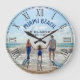 Das Hotel Miami Beach, Florida Souvenir Beach House, eine Wanduhr mit sonniger Strandszene, zeigt eine glückliche Familie, die das schöne Florida Sonnenschein, Surfen und Sand geniessen kann. Ein tolles Geschenk für ein Strandhaus Erwärmung Party. Da der Text auf dieser Wanduhr vollständig anpassbar ist, können Sie den Namen in jeden Strand oder Familiennamen Ihrer Wahl ändern. Mit der Personalisierungsschaltfläche Zazzle können Sie die Rechtschreibung, den Stil, die Farbe und die Größe des Schriftartes ändern.