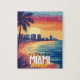 Bringen Sie die sonnenverwöhnte Atmosphäre von Miami Beach mit dieser beeindruckenden Postkarte in Ihren Raum. Dieses Kunstwerk besticht durch seine symbolträchtigen Palmen, die an einem feuerten Sonnenuntergangshimmel silbrig geschmückt sind, die abstürzenden Wellen und die glitzernde Skyline von Miami. Ideal für Reisende, Strandliebhaber oder alle, die eine Touch tropischer Lebensfreude suchen.