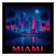Bring the heat of South Florida nights to your walls with Miami Moonrise, a radiant cityscape design that pulses with tropical energy. This stylized illustration features glowing skyscrapers in vibrant pinks, purples, and blues, reflected in calm waters beneath a full moon. Silhouetted palm trees frame the scene, while the bold “MIAMI” text anchors the composition in a sunset-to-neon gradient.