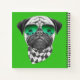 Dieses Design zeichnet sich durch ein Portrait Mops mit Sonnenbrille und einem schwarz-weiß karierten Schal aus.