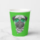 Dieses Design zeichnet sich durch ein Portrait Mops mit Sonnenbrille und einem schwarz-weiß karierten Schal aus.
