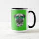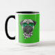 Dieses Ausrüstungsbeschreibungen ein Porträt des Mops herein mit Sonnenbrillen und einem checkered Schwarzweiss-Schal.