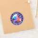 Ocean Drive Miami Florida, Miami Ocean Drive Aufkleber mit amerikanischer Fahne Farben und Foto von Ocean Drive, gerundet Form. Ocean Drive Miami tropischer Sommerstrand vibes Cities of Florida Collection