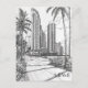 Diese Postkarte im handgezeichneten Stil zeigt einen Blick auf Miamis Skylines.