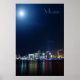 Schönes Nachtfoto der Skyline von Miami mit schönen Reflexionen auf dem Wasser. Passen Sie den Text nach Ihren Wünschen an oder entfernen Sie ihn ganz.