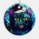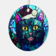 Miauende Glasmalerei-Weihnachts-Schwarzkatze Keramik Ornament